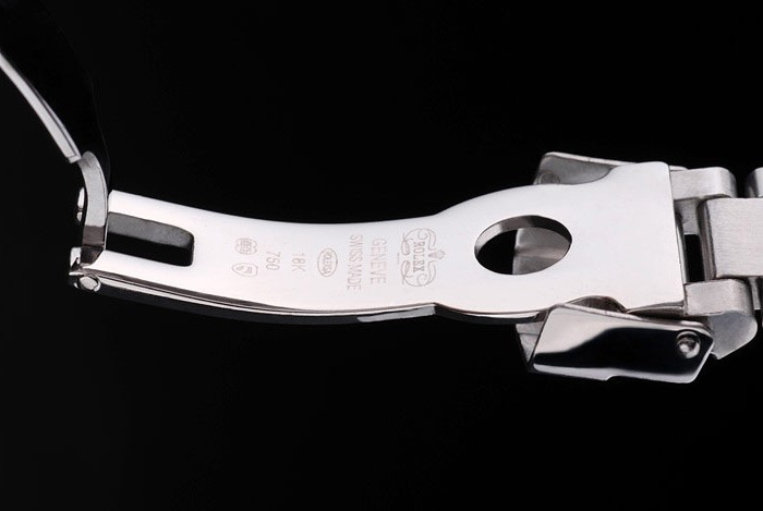 Armband: geschliffener und polierter Edelstahl-Gliederarmband mit Rolex Gravur Faltschließe die Rolex logo