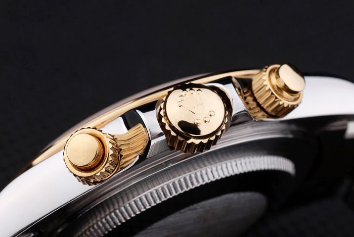 Krone: Goldfarbene cutwork Krone mit Rolex-logo und zwei weitere Kronen auf beiden Seiten it