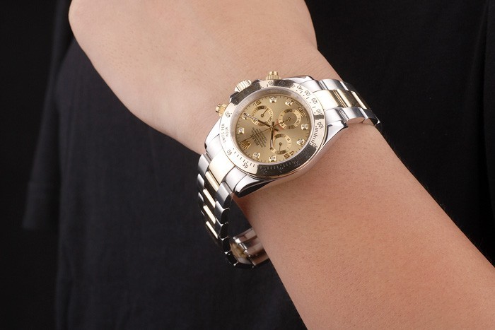 Armband: Zwei getönten geschliffener und Goldton Edelstahl-Gliederarmband mit Rolex Gravur Faltschließe die Rolex logo