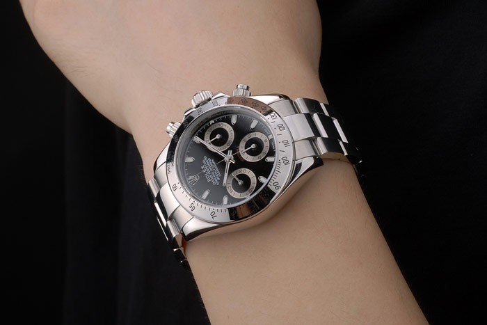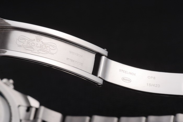 Back Bewegung: Push-in Edelstahl zurück mit grünen Rolex Aufkleber und markings