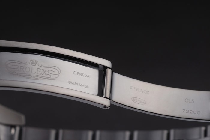 Armband: ionenplattiert Edelstahl-Gliederarmband mit Rolex Einfalt-Faltschließe eingraviert die Anzeige Rolex logo