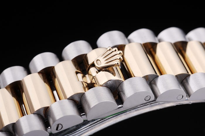 Armband: Edelstahl gebürstet und Gelbgold Gliederarmband mit Rolex-Logo versteckt clasp