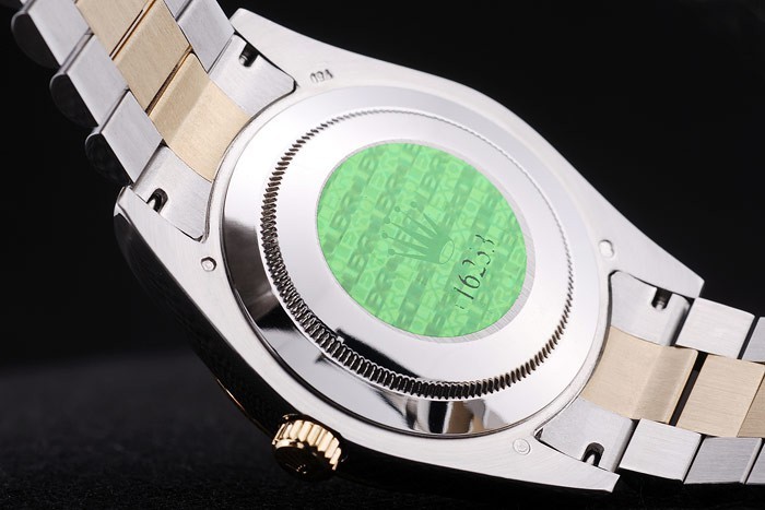 Rückseite: Edelstahl-Snap-In Rückseite mit grünen Rolex Authentizität sticker