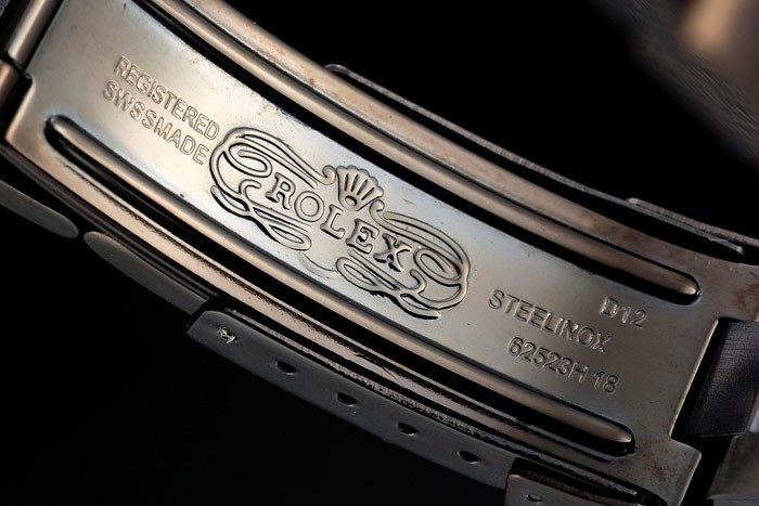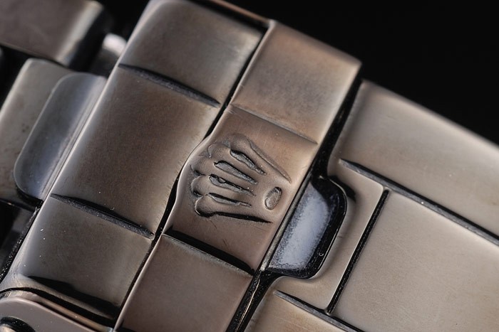 Armband: ionenplattiert Edelstahl-Gliederarmband mit mit Rolex Einfalt-Verschluss graviert logo auf top