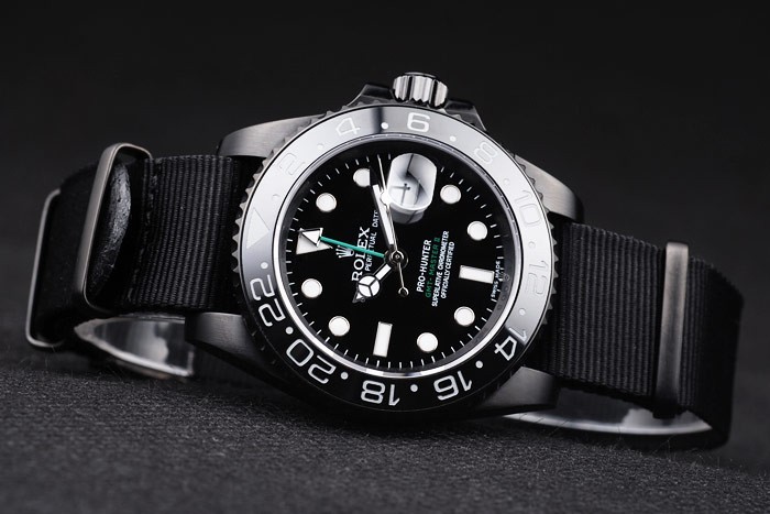 Schweizer Rolex GMT Master II Pro-Hunter-Schwarz-Gewebe-Bügel-Zifferblatt schwarz
