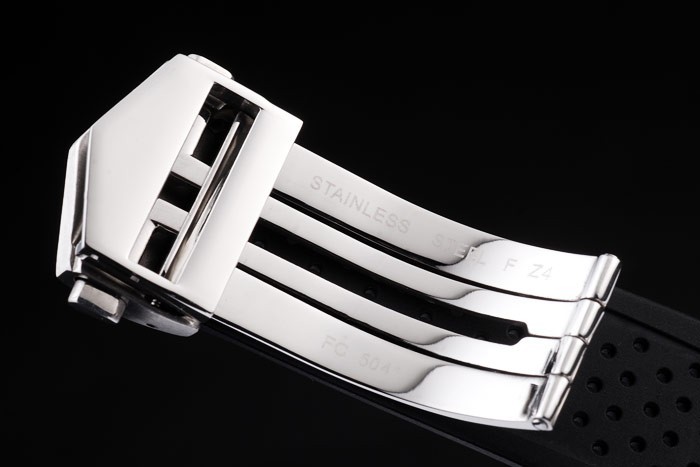 Armband: Perforierte schwarz Band Gummi mit gebürstetem Edelstahl Druckknopfauslösung in Spange falten mit Tag Heuer engraving