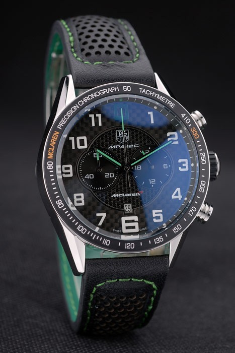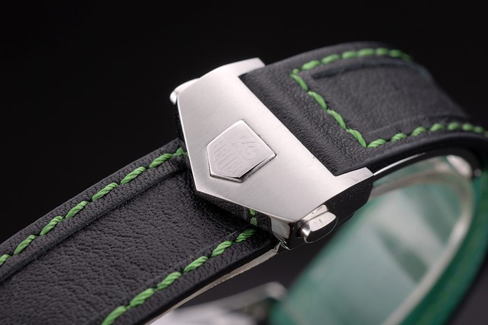 Armband: Wärme Tag Heuer schwarzes Lederarmband mit grünen Nähten und Edelstahl Einfalt-Spange mit Push-Release geprägt feature
