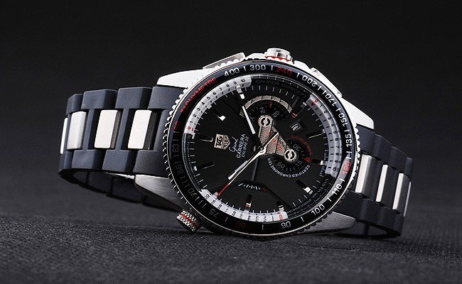 Krone: Edelstahl poliert cutwork Krone mit Tag Heuer-logo plus zwei zusätzliche Kronen auf beiden Seiten und einer auf der gegenüber oben corner