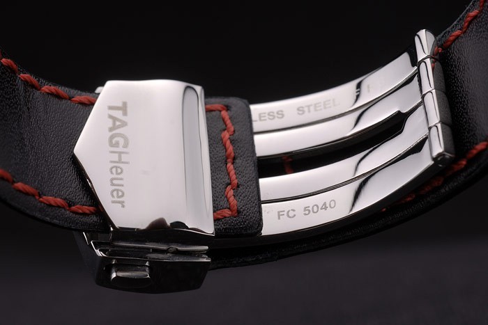 Armband: Hitze geprägt Tag Heuer schwarz perforiert Lederarmband mit roten Nähten auf der Innenseite und Edelstahl Einfalt-Verschluss mit Push-Release feature