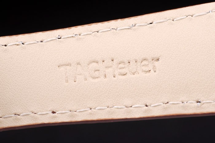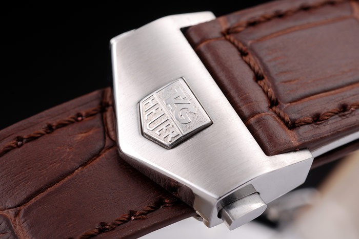Armband: Brown Krokolederarmband mit Wärme geprägt Tag Heuer Stempel und gebürstetem Edelstahl Push-Release-fach -in Spange mit Tag Heuer-logo auf top