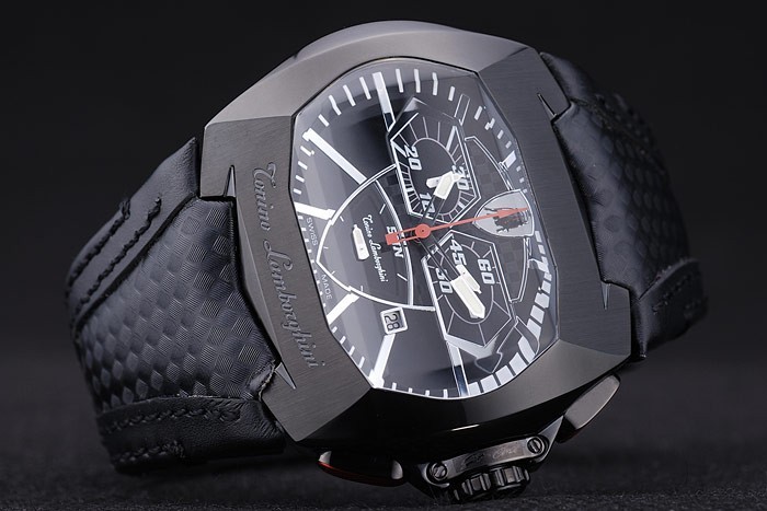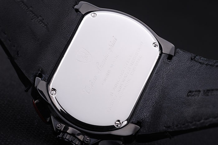 Armband: Schwarzes Lederband mit Hitze Prägestempel und Tonino Lamborghini-Logo geprägt und graviert ionenplattiert Falte -in Flip-over clasp