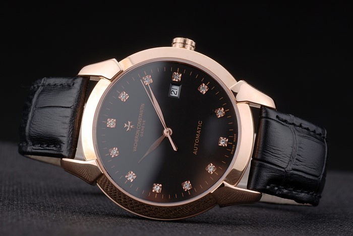 Armband: Hitze geprägt Vacheron Constantin und Logo schwarzem Krokolederarmband mit 18 Karat Rose- vergoldet logo Haken-Schnalle clasp