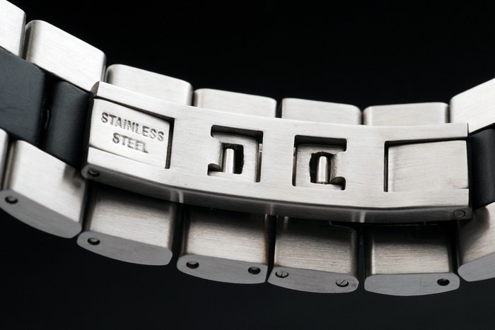 Armband: Edelstahl gebürstet und strukturierte Ionen plattierten Gliederarmband mit verdeckter Schließe und inscription