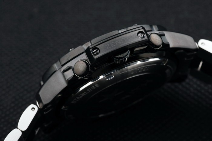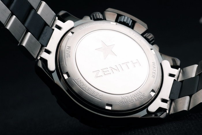Rückseite: Edelstahl Push auf der Rückseite mit Zenith inscriptions